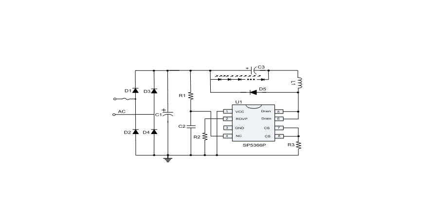 SP5366P是一款高精度非隔離降壓型LED照明轉換芯片。此款芯片工作在電感電流臨界連續(xù)模式,適用于85Vac~265Vac全電壓范圍下的非隔離降壓型恒流LED驅動電源。