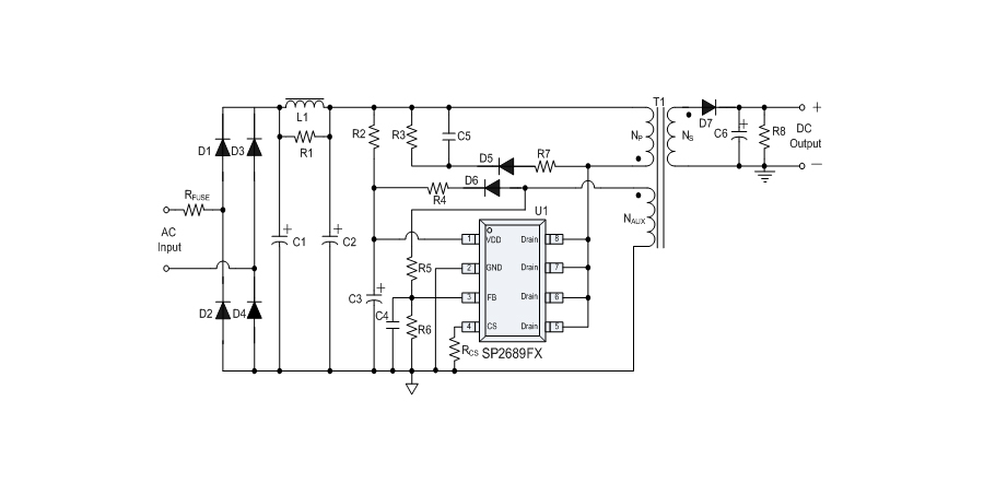 SP2689FB是一款性能優(yōu)異的原邊反饋控制電路,應用于AC/DC充電器與適配器??刂齐娐肥褂迷叢蓸蛹夹g進行精確的恒流、恒壓控制,可以省去一般應用中的光耦與TL431。