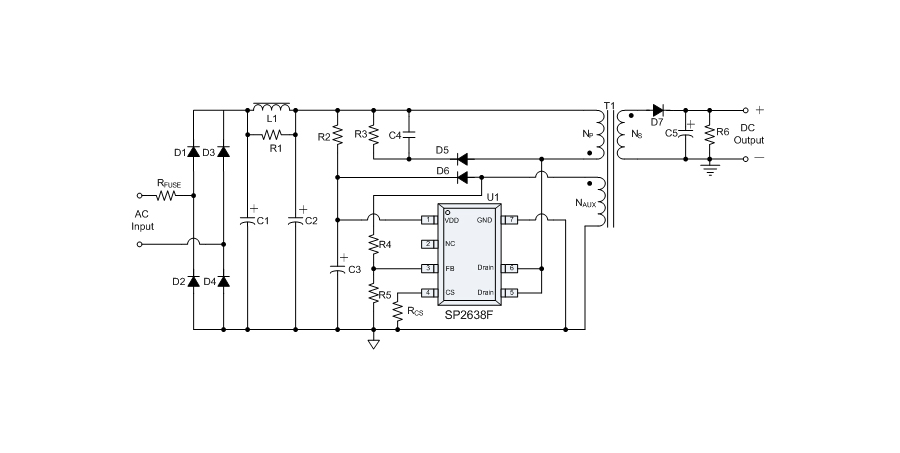 SP2638F 是一款性能優(yōu)異的原邊反饋控制電路,應(yīng)用于小功率 AC/DC 充電器與適配器??刂齐娐肥褂迷叢蓸蛹夹g(shù)進(jìn)行精確的恒流、恒壓控制,可以省去一般應(yīng)用中的光耦與 TL431。